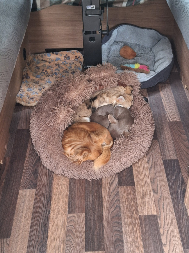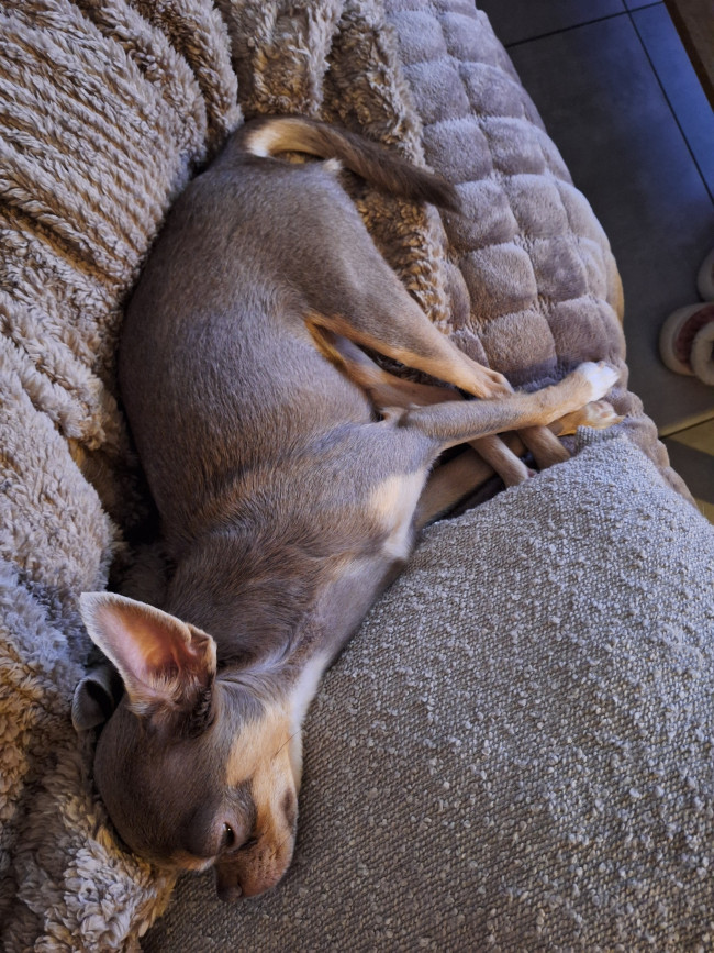 Sie liebt kuschelige Momente genauso wie Bewegung und gemeinsame Spaziergänge. Cleo ist aktiv, ohne aufgedreht zu sein, und findet die perfekte Balance zwischen Ruhe und Lebensfreude. Mit ihrer sanften, harmonischen Art bringt sie viel Wärme und Herz in unser Rudel.